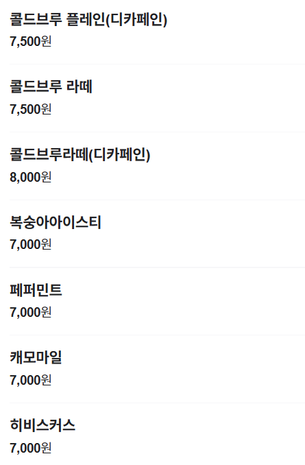 | 대표메뉴 | 시그니처 커피, 당근 케이크, 유자에이드 |