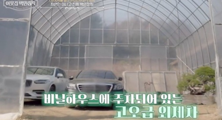비닐하우스 안에는 고급 외제차가 주차돼 있는 모습이 방송에 포착돼 화제를 모았어요.