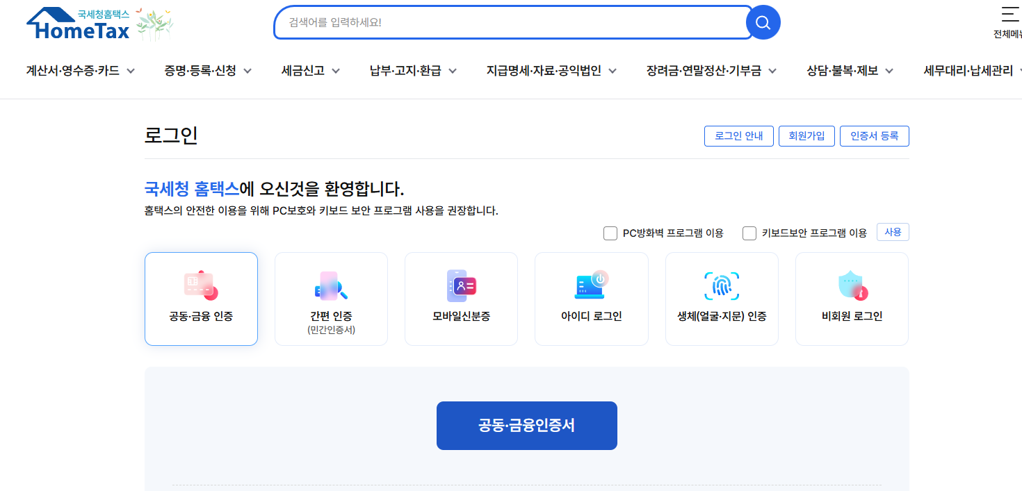 - 홈택스(www.hometax.go.kr) 접속 후 로그인