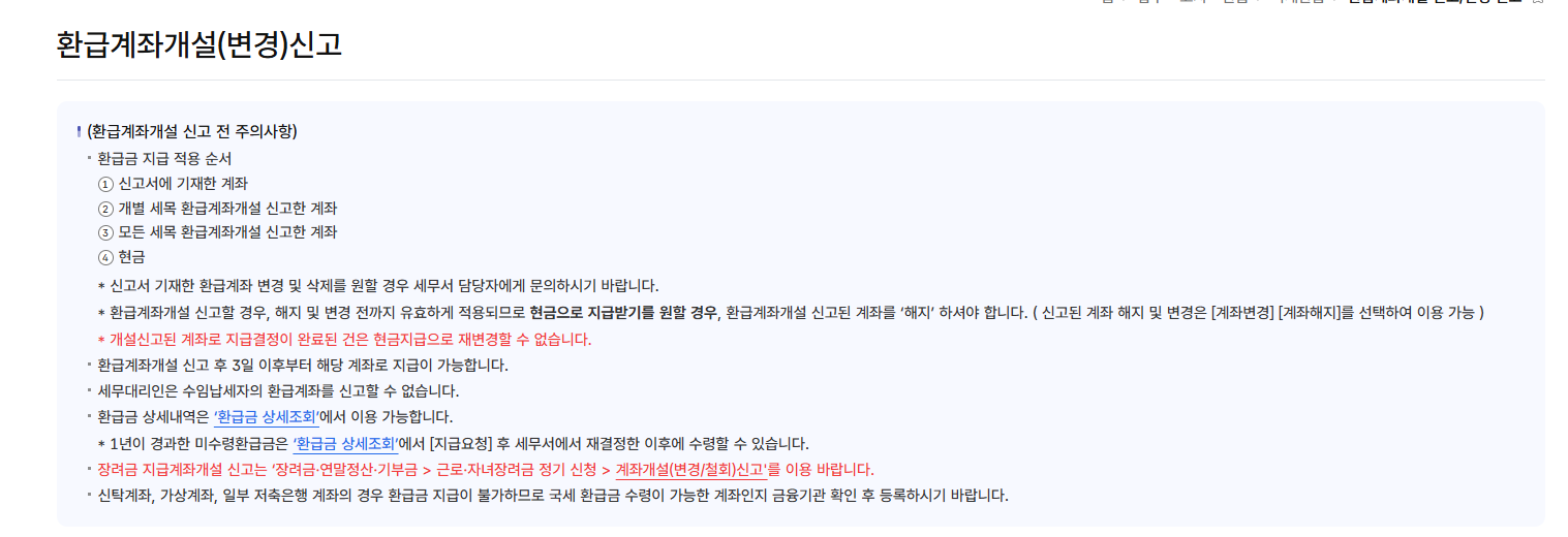 계좌 미등록 시 환급금이 발생해도 지급되지 않거나 지연될 수 있습니다.