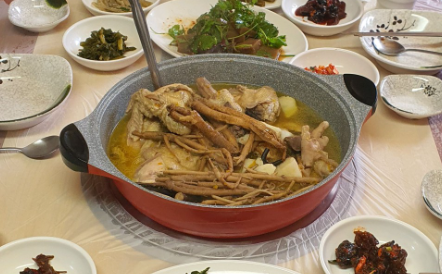 방송에서 키는 ‘약초능이백숙정식’을 주문했는데요. 고소한 된장 향과 깊은 맛이 어우러진 강된장은 따뜻한 흰밥에 쓱쓱 비벼 먹기 딱 좋았고, 더덕구이는 숯불 향이 은은하게 배어들어 있어 입맛을 돋웠어요.