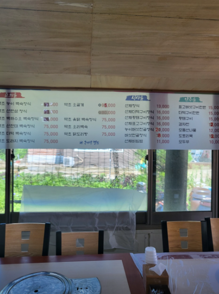 | 약초산만삼백숙정식 | 90,000원 |